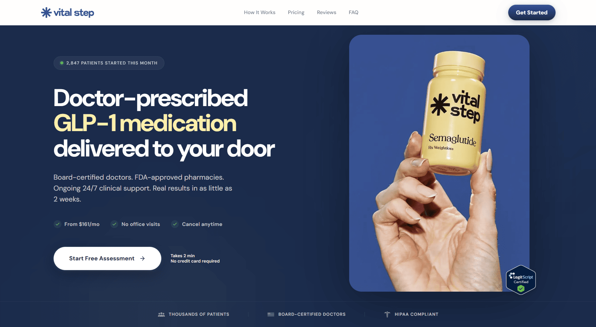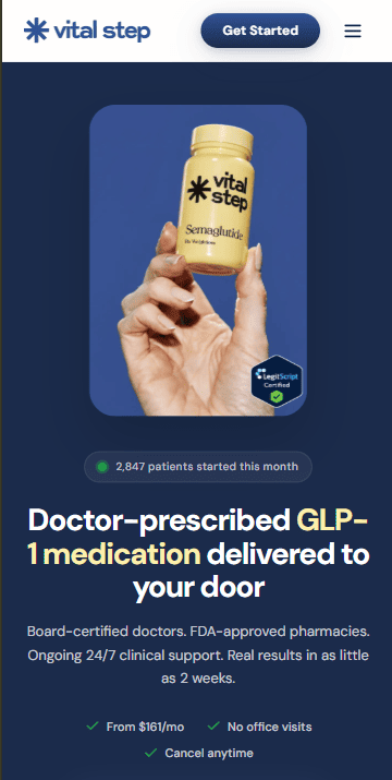 Discover the Vital Step program, a comprehensive solution designed for your well-being. With flexible subscription plans starting at $161 per month, you gain access to premium features, including a consultation with a licensed professional to guide your journey. Our commitment is to provide high-quality service with the convenience of fast, free delivery and the freedom to manage your subscription as you see fit.